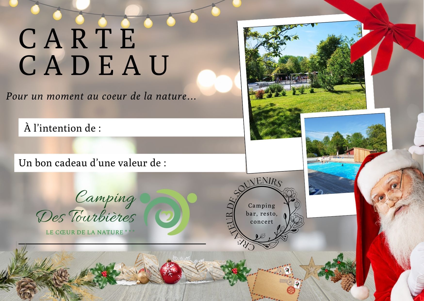 Carte cadeaux valable sur les séjours, le bar et le restaurant.